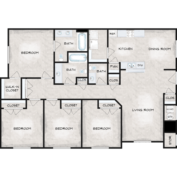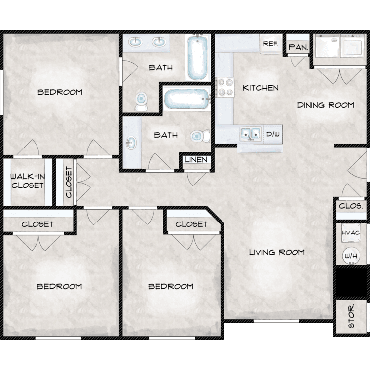 Desert Villas presents four designer floor plans, featuring one, two, three, and four-bedroom apartments for rent. All of our lovely residences come equipped with 9-foot ceilings, evaporative cooling, carpet and tile flooring, walk-in closets, and an in-home washer and dryer, making everyday chores a breeze. Take delight in preparing meals in your gourmet kitchen furnished with a refrigerator, microwave, dishwasher, breakfast bar, and pantry. Designed with your comfort in mind, our residence will fit all your needs.